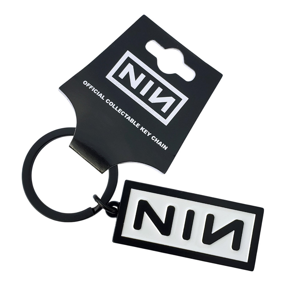 - Porte-clé noir mat et blanc brillant avec design "NIN - Logo".